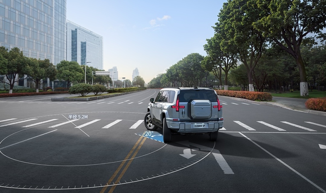 越野性能上,猛士M817 Max+版凭借“磐石底盘+极猛动力+智能全地形系统”三大核心技术,具备强大的复杂路况适应能力。双向20°后轮转向技术,让5.1米长车身拥有仅5.2米的最小转弯半径,城市窄路掉头、野外绕障更灵活;150mm上下可调空气悬架可按需切换高度——下地库时降至1850mm通过1.9m限高杆,遇到陡坡、碎石堆时升高105mm,使最小离地间隙达333mm,保障通过性。